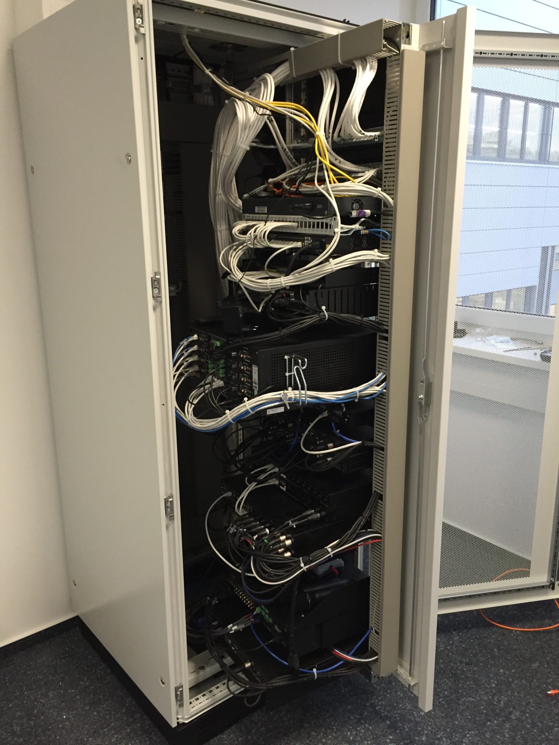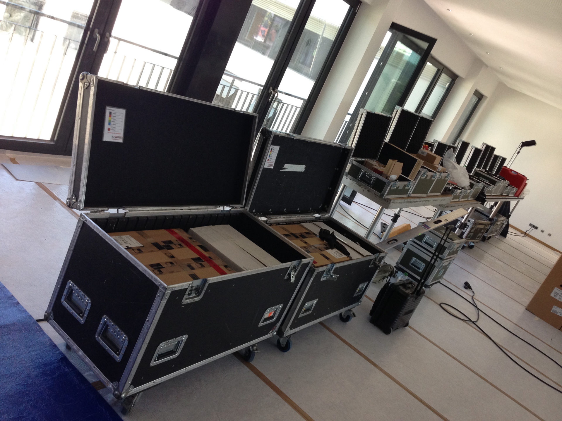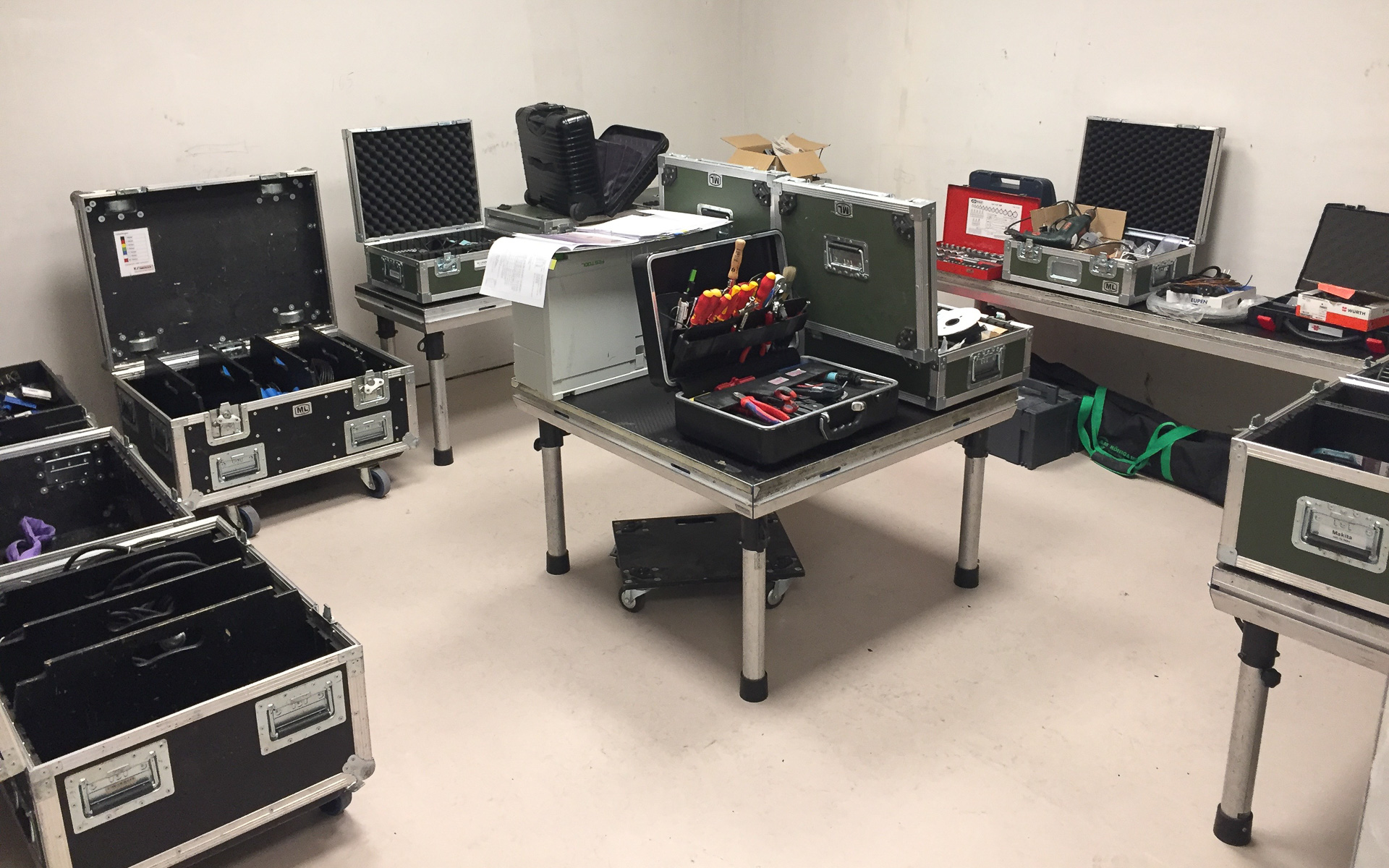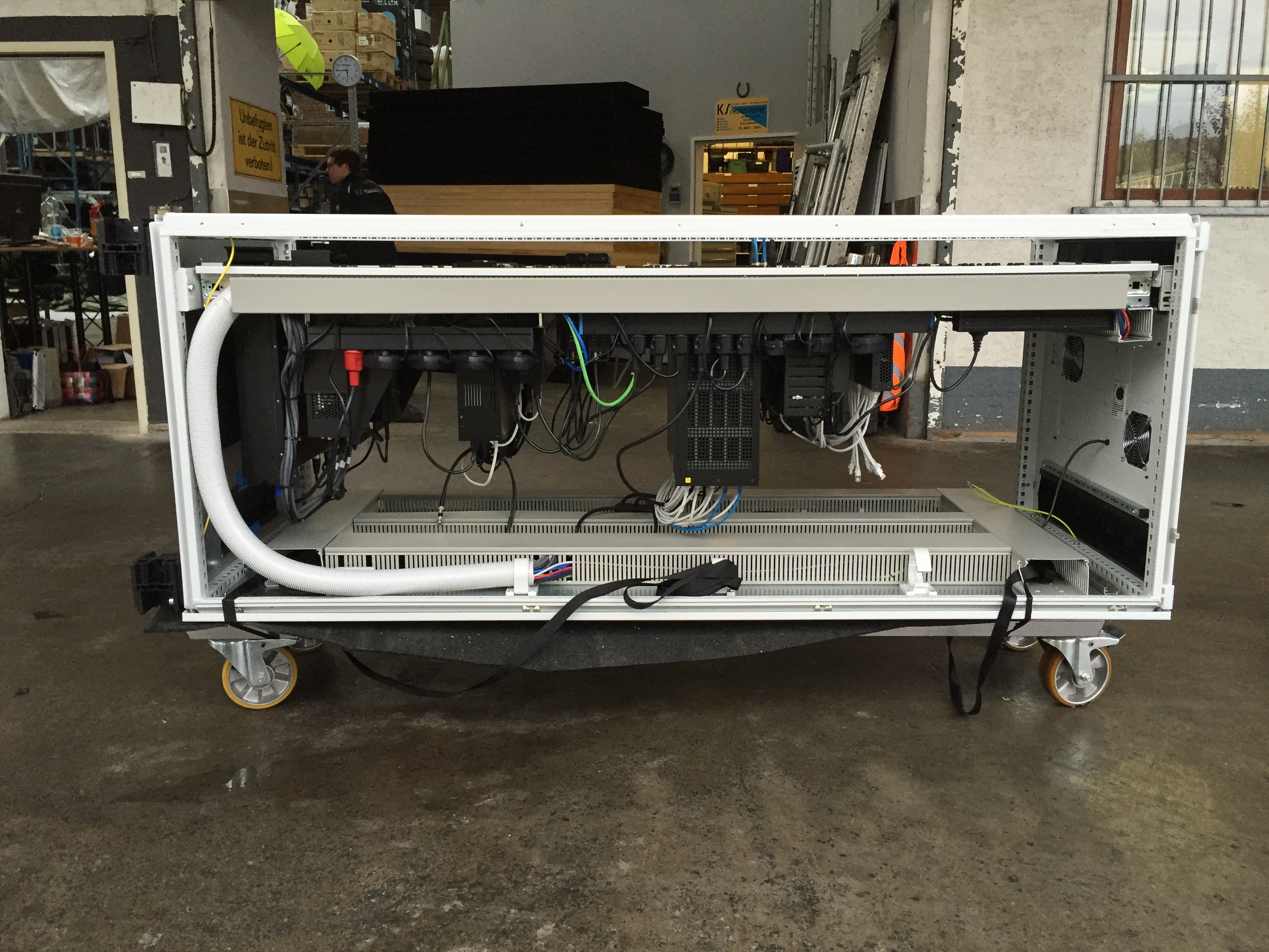 Gemeinsam mit Hochtief haben wir einen Veranstaltungsraum nach dem Black-Box-Prinzip entwickelt und realisiert. Die Idee dahinter ist, dass der Raum sich in Architektur, Licht und Ton maximal verändern lässt. Ganz klassisch mit frontaler Bühne, oder mit Bühne mittig und Publikum drum herum, Publikum auf der Bühne und Künstler im Saal – das sind nur drei von vielen möglichen Nutzungsszenarien. Erreicht haben wir das mit elektrisch fahrbaren Traversen und kopfbewegten LEDs (Moving Lights) von Elation sowie JB Lightning. Dank ihrer Blendenschieber lässt sich die Beleuchtungsform flexibel anpassen. Wash-Lights tragen zur Farbenpracht bei. Für den Ton haben wir mit dem Allen Heath C-Live top-aktuelle Mischpulttechnik mit bewährten Lautsprechern von Seeburg kombiniert. Alle Lautsprecher sind aufgehängt, inklusive den Bassboxen. Die Leitungsführung ist durch ein Schleppkettensystem realisiert. Dadurch hängen keine Leitungen lose herum, sondern alles ist ordentlich und sicher verstaut.